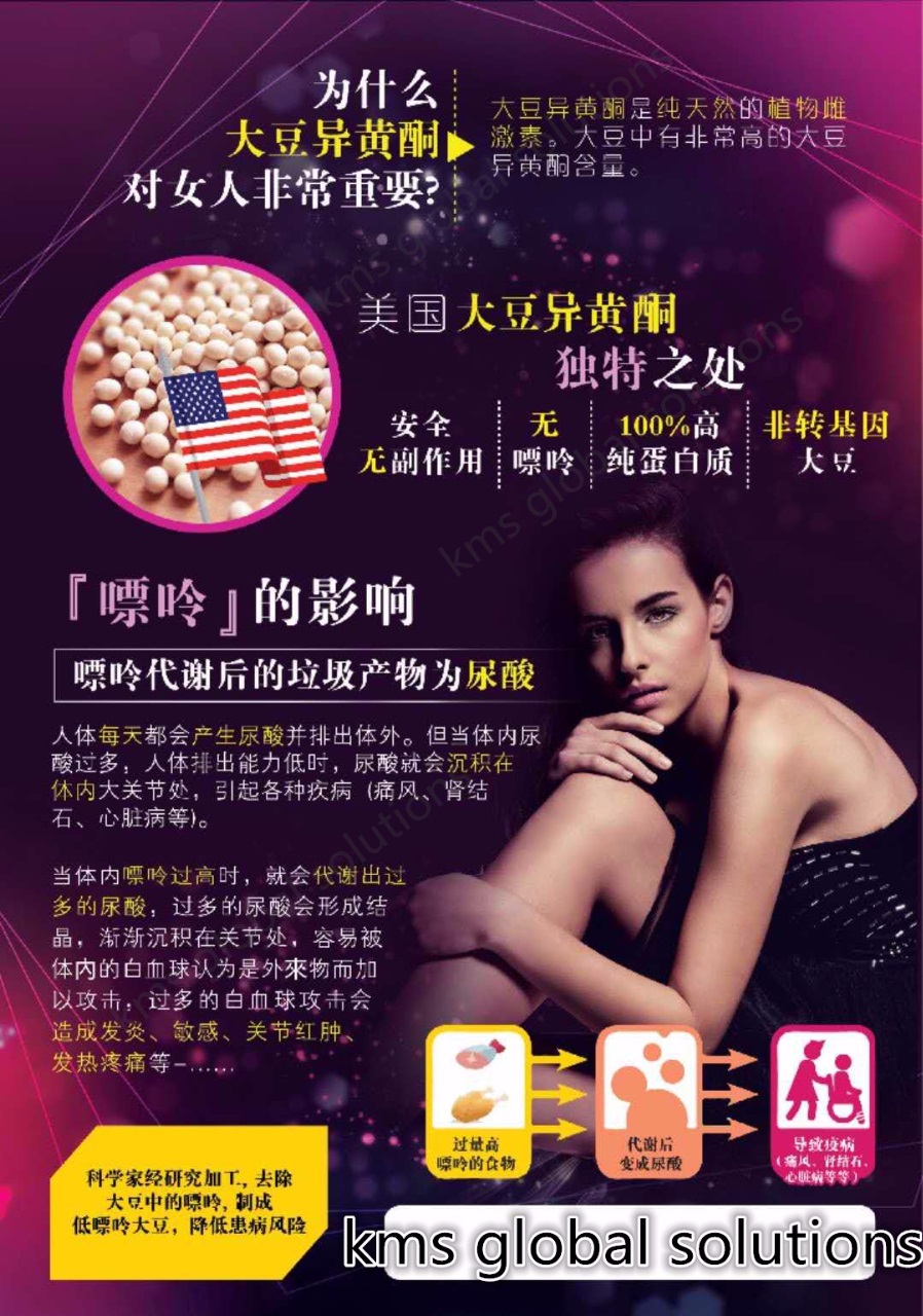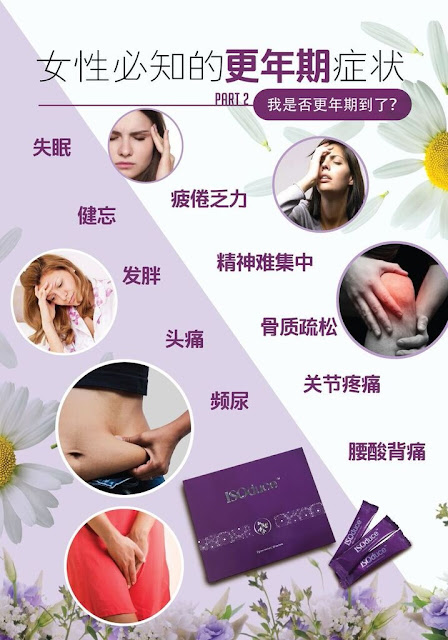 大豆异黄酮 (Soy Isoflavone)是从大豆浓缩的天然化合物。大豆异黄酮又被称为植物雌激素,具有与女性雌激素相似的结构。因此它可以安全地、选择性地且温和地模仿雌激素的作用。据报道,植物雌激素拥有许多的健康好处,其中包括缓解更年期妇女的恼人更年期症状,如潮热、盗汗及阴道干燥等,同时促进良好的心脏健康并维持妇女绝经后的骨骼健康。ISOduce是代替靠药物雌激素替代疗法以控制更年期症状的首选。
