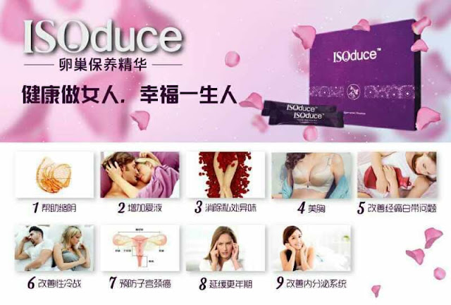 ISOduce 主要の功效1. 丰胸结实2. 调理女性经期, 月经失调, 停经闭经- -经量少,经期不稳定,经期缩短导致逐渐停经3. 减少经痛、卵巢保养、减少白带、滋阴缩阴、收缩子宫4. 性生活不协调 - 改善性衰退, 阴道分泌物减少,性交疼痛 5. 更年期 -卵巢功能逐渐衰退乃至消失,由生殖旺盛期转入老年期