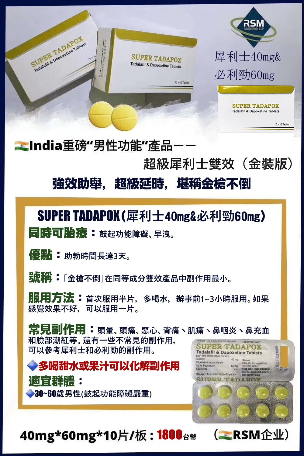 超级双效犀利士(金装版)全新重磅、出口欧盟