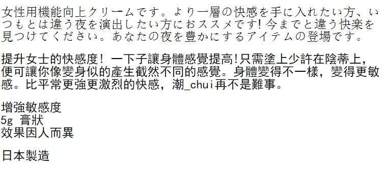 以日本獨特配方製成,專為提升女性敏感度而設。