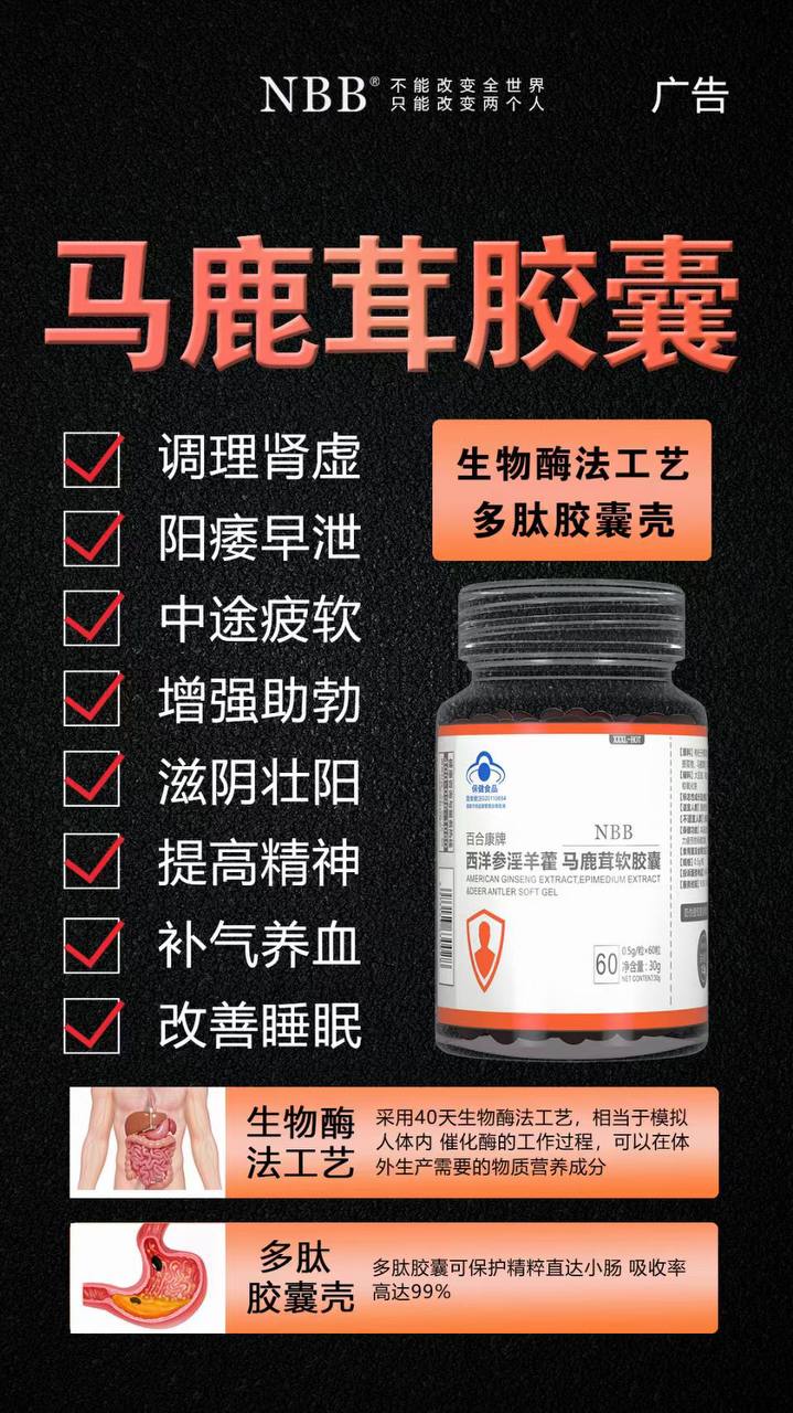 身体有活力,才能为所欲为! 男人养好了身体才够强够猛! 秘NBB马鹿茸软胶囊 补s hen强s hen,快速恢复s hen动力👍 还你男性雄风,横扫疲乏就现在。